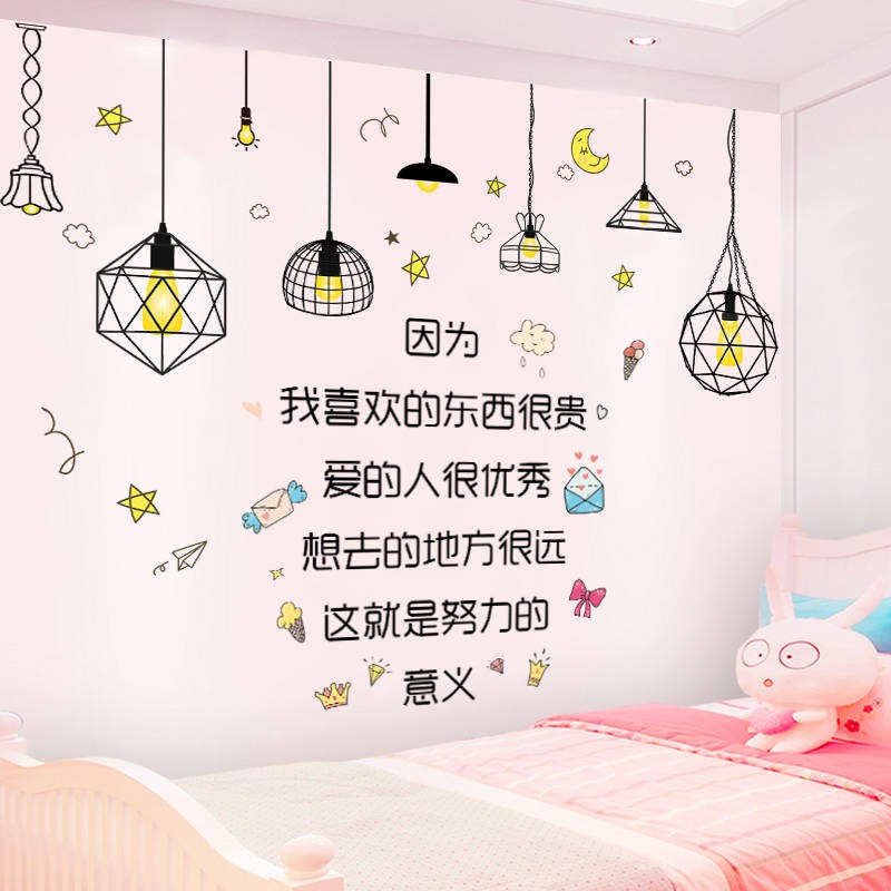 自粘墙贴壁纸#少女心ins风墙贴纸创意文字贴纸卧室房间墙壁装饰品墙纸自 ...