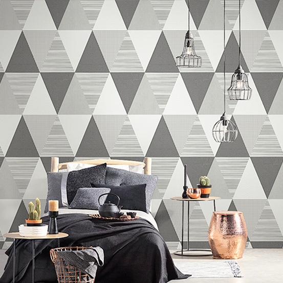 北欧风格男孩卧室几何图案壁纸ins风墙纸现代简约灰色三角形格子
