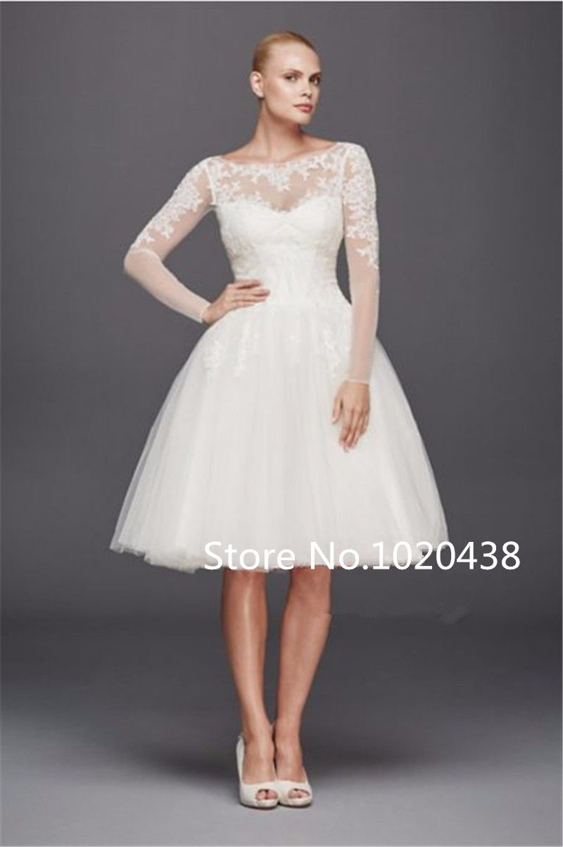 Acquista Abito Da Sposa Corto Scoop Con Maniche Lunghe ZP341642 ...